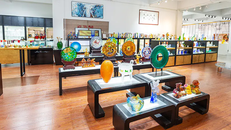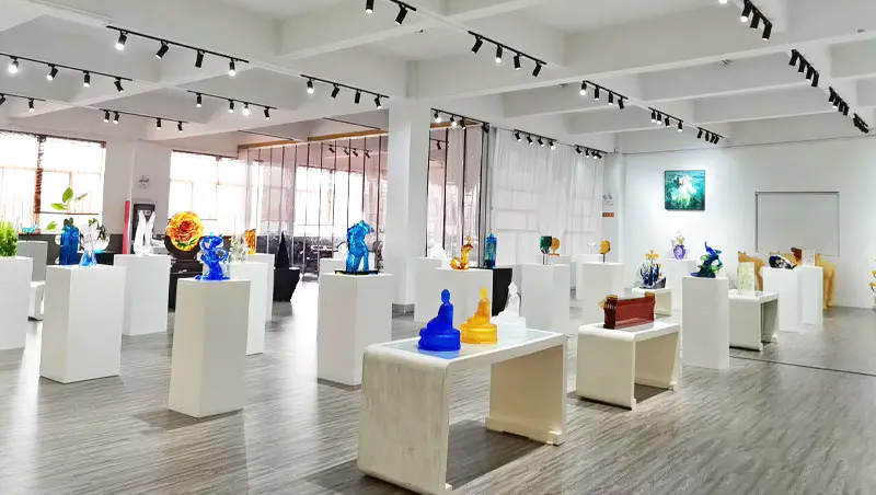 Ang mga likhang sining na gawa sa salamin ay unti-unting umunlad mula sa tradisyonal na mga regalong gawa sa bapor upang sumaklaw sa mga dekorasyong kasangkapan, kulturang Budista, kristal na pinggan, at naka-istilong alahas. Ang production base ng kumpanya ay matatagpuan sa maganda at maunlad na water town ng Jinxi sa Kunshan, Jiangsu Province. Nagtatampok ito ng isang research at development space para sa paggawa ng salamin na sumasaklaw sa 35,000 square meters. Ang pasilidad ay nilagyan ng mga independiyenteng kakayahan sa disenyo, clay modeling techniques, at teknolohikal na pananaliksik at mga mapagkukunan ng pagpapaunlad, na nagpapakita ng mga mature na kasanayan sa parehong mga proseso ng pagbuo ng produkto at pagmamanupaktura.