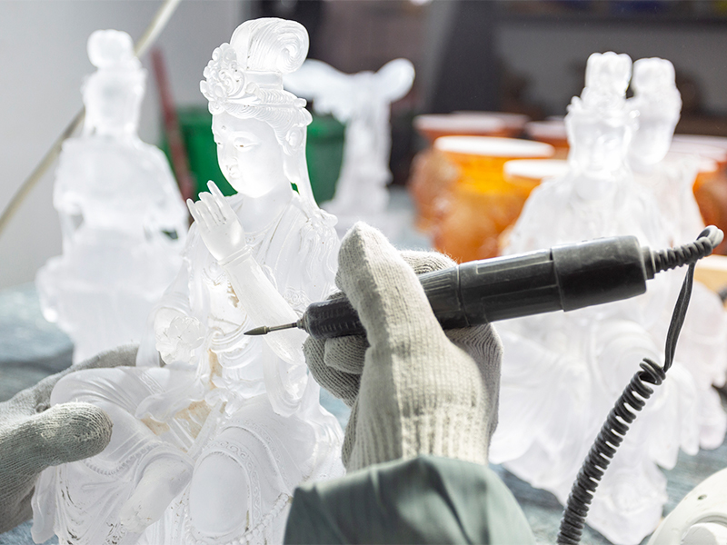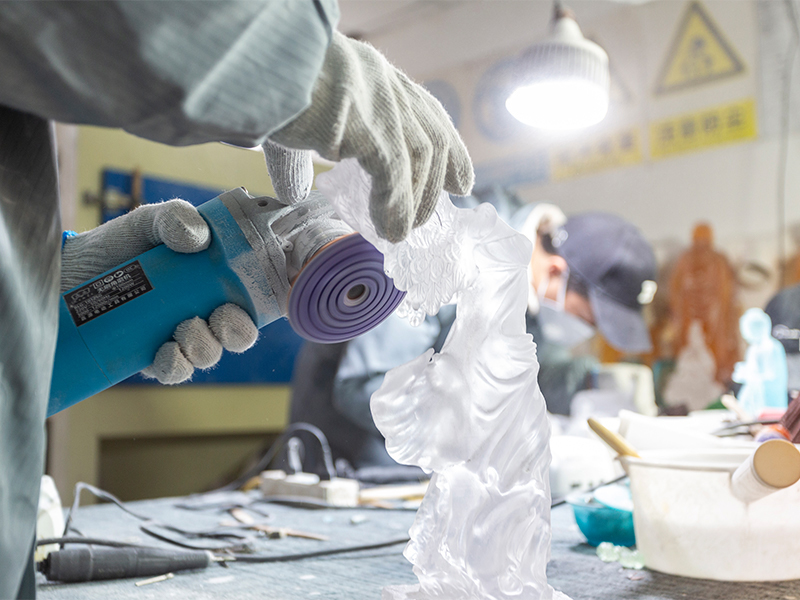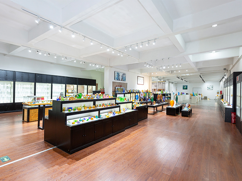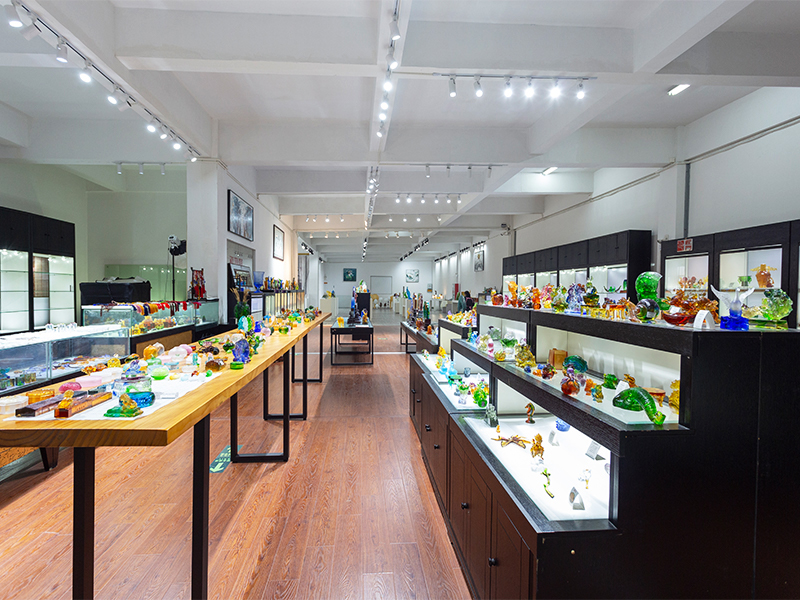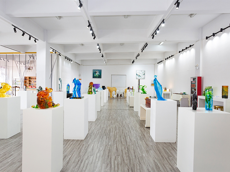 Ang mga likhang sining na gawa sa salamin ay unti-unting umunlad mula sa tradisyonal na mga regalong gawa sa bapor upang sumaklaw sa mga dekorasyong kasangkapan, kulturang Budista, kristal na pinggan, at naka-istilong alahas. Ang production base ng kumpanya ay matatagpuan sa maganda at maunlad na water town ng Jinxi sa Kunshan, Jiangsu Province. Nagtatampok ito ng isang research at development space para sa paggawa ng salamin na sumasaklaw sa 35,000 square meters. Ang pasilidad ay nilagyan ng mga independiyenteng kakayahan sa disenyo, clay modeling techniques, at teknolohikal na pananaliksik at mga mapagkukunan ng pagpapaunlad, na nagpapakita ng mga mature na kasanayan sa parehong mga proseso ng pagbuo ng produkto at pagmamanupaktura.