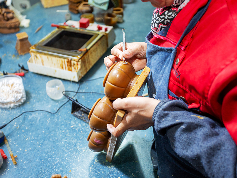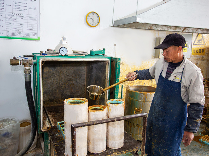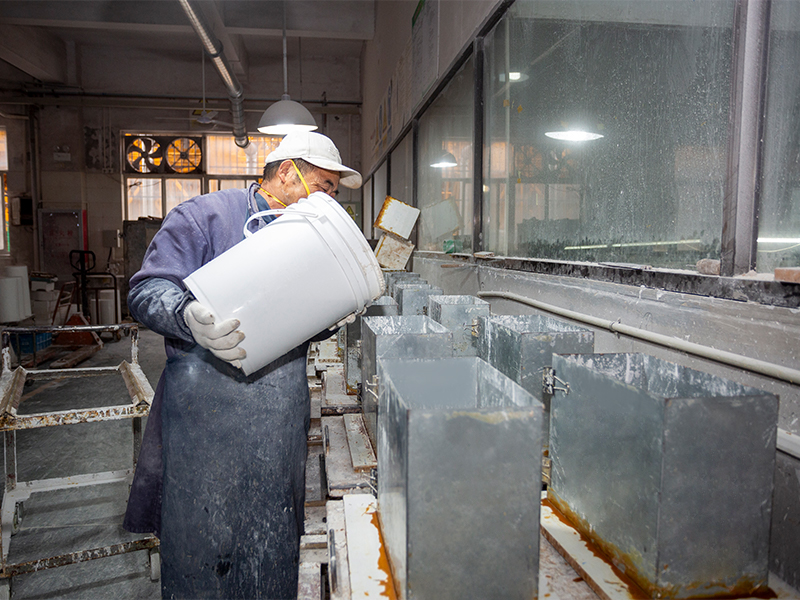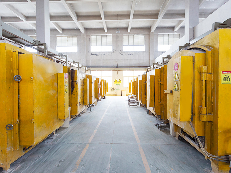 Ang pabrika ay nilagyan ng mga production workshop para sa dewaxing, sintering, die-casting, cutting, at polishing. Mayroon itong kumpletong kagamitan sa produksyon, kabilang ang 30 high-temperature annealing furnace, 3 malalaking die-casting machine, isang 40-meter track kiln furnace, isang awtomatikong sandblasting machine na may 12 ulo, at isang buong set ng semi-awtomatikong cold processing equipment para sa paggiling, pagputol, at pag-polish.