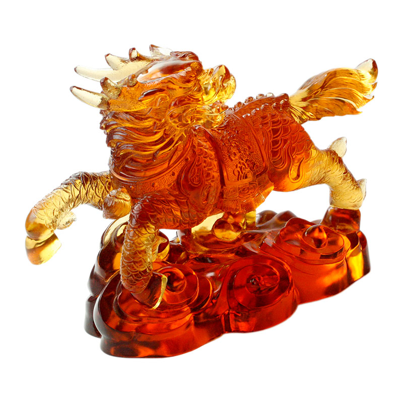 Ang hugis ng salamin na hayop na ito ay parang buhay, at ang bawat detalye ay inilalarawan nang napakapino, mula sa ekspresyon ng mukha ng halimaw hanggang sa mga linya ng kalamnan ng katawan, at hanggang sa matikas na postura ng buntot, na lahat ay nagpapakita ng napakahusay na kasanayan ng craftsman. Ang glass beast na ito ay gumagamit ng mainit at layered na tono. Ang kulay ng amber ay nagbibigay dito ng isang marilag at solemne na pag-uugali, na parang ito ay isang tagapag-alaga na hayop mula sa isang sinaunang alamat. Ang salamin ay magre-refract ng kaakit-akit na liwanag sa ilalim ng pag-iilaw ng liwanag, na ginagawang ang glass beast na ito ay nagpapakita ng iba't ibang visual effect sa iba't ibang anggulo, na nagdaragdag sa mahiwagang kagandahan nito.