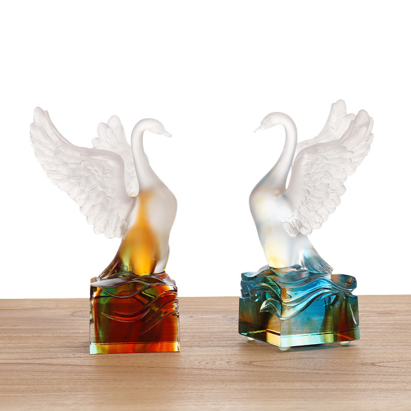 Sa pangkalahatan, ang glass swan na ito ay hindi lamang isang visual na kasiyahan, kundi isang kanais-nais na kumbinasyon ng craftsmanship at sining. Ito ay sumisimbolo sa kagandahan at maharlika. Ilagay man ito sa bahay bilang palamuti o iregalo sa iba, maaari itong maghatid ng kakaibang artistikong alindog at panlasa.