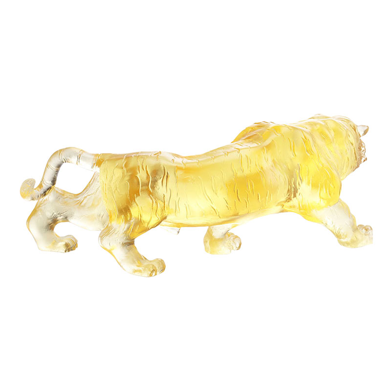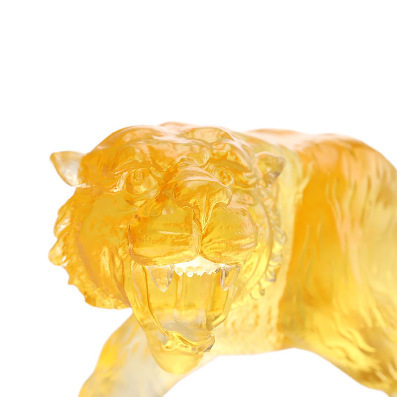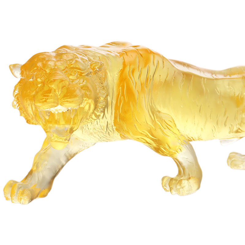 Bilang isang sinaunang at mahiwagang materyal, ang kulay na glaze ay may mga katangian ng linaw ng kristal at makulay na mga kulay. Ang hanay ng mga burloloy na ito ay nagpapakita ng mga pakinabang ng kulay na glaze. Ang tigre ay marilag, at ang bawat linya ng kalamnan ay inilalarawan nang detalyado. Ang tindig nito ay handang sumunggab sa kanyang biktima sa susunod na segundo, na nagpapakita ng kanyang pagiging hari. Ang imahe ng dragon ay paikot-ikot, at ang mga detalye, tulad ng mga balbas ng dragon at kaliskis ng dragon, ay parang buhay, na parang lumilipad sa mga ulap, puno ng misteryosong kapaligiran.