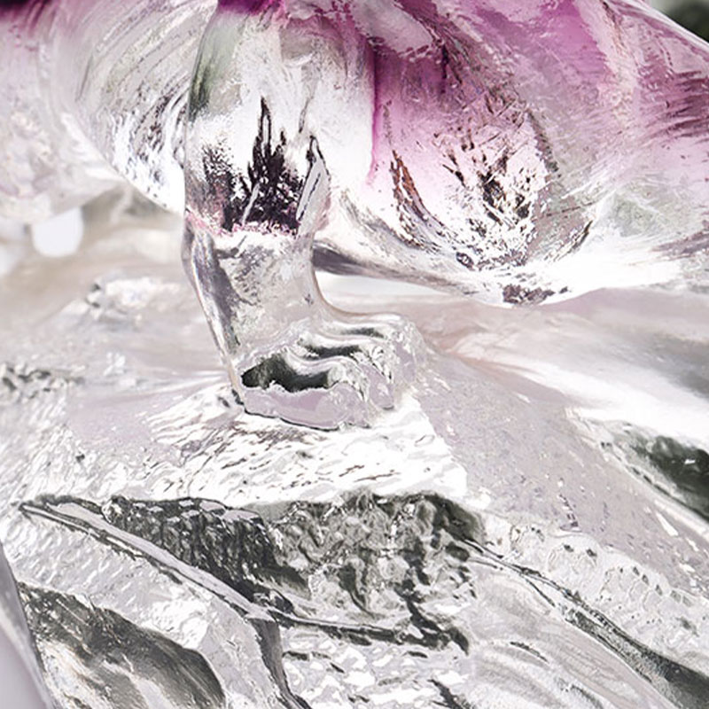 Sa totoo lang, medyo normal para sa mga likhang sining ng salamin na maglaman ng mga bula. Ito ay dahil sa aming paggamit ng lost-wax casting technique, na natural na nagreresulta sa pagkakaroon ng mga bula sa loob ng mga piraso. Ang paraan ng pag-refract ng liwanag sa pamamagitan ng mga panloob na bula na ito ay nagpapakita ng kakaibang kagandahan ng materyal na salamin. Maganda nitong inilalarawan na ang salamin ay tunay na nagsisilbing sisidlan ng liwanag.