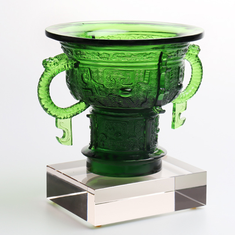 Ang mga likhang sining na gawa sa salamin ay unti-unting umunlad mula sa tradisyonal na mga regalong gawa sa bapor upang sumaklaw sa mga dekorasyong kasangkapan, kulturang Budista, kristal na pinggan, at naka-istilong alahas. Ang production base ng kumpanya ay matatagpuan sa maganda at maunlad na water town ng Jinxi sa Kunshan, Jiangsu Province. Nagtatampok ito ng isang research at development space para sa paggawa ng salamin na sumasaklaw sa 35,000 square meters. Ang pasilidad ay nilagyan ng mga independiyenteng kakayahan sa disenyo, clay modeling techniques, at teknolohikal na pananaliksik at mga mapagkukunan ng pagpapaunlad, na nagpapakita ng mga mature na kasanayan sa parehong mga proseso ng pagbuo ng produkto at pagmamanupaktura.