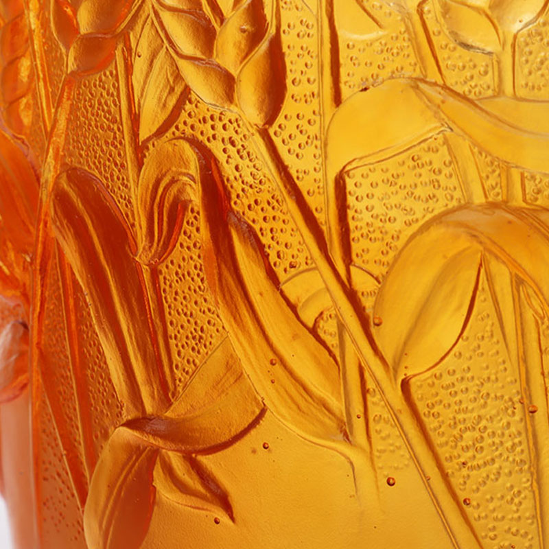 Ang mga likhang sining na gawa sa salamin ay unti-unting umunlad mula sa tradisyonal na mga regalong gawa sa bapor upang sumaklaw sa mga dekorasyong kasangkapan, kulturang Budista, kristal na pinggan, at naka-istilong alahas. Ang production base ng kumpanya ay matatagpuan sa maganda at maunlad na water town ng Jinxi sa Kunshan, Jiangsu Province. Nagtatampok ito ng isang research at development space para sa paggawa ng salamin na sumasaklaw sa 35,000 square meters. Ang pasilidad ay nilagyan ng mga independiyenteng kakayahan sa disenyo, clay modeling techniques, at teknolohikal na pananaliksik at mga mapagkukunan ng pagpapaunlad, na nagpapakita ng mga mature na kasanayan sa parehong mga proseso ng pagbuo ng produkto at pagmamanupaktura.