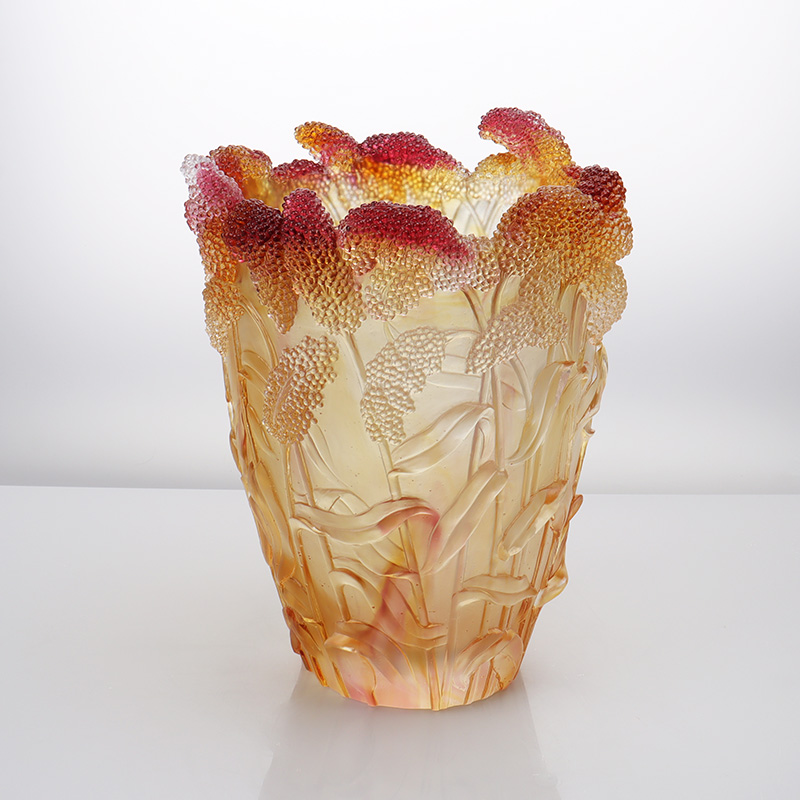 Ang Harvest sa huli ay tumatayo bilang isang "kontemporaryong pagpapahayag ng tradisyon": ang espirituwal na esensya ng sorghum ay nabuhay muli sa pamamagitan ng translucency ng salamin, habang ang gradient hues ay gumagamit ng oras bilang isang brush upang ipinta ang tula ng agrikultura. Binubuhay ng Lost-wax casting ang mga sinaunang pamamaraan na natutulog sa modernong panahon. Kapag sinasala ng liwanag ang sisidlan, ang umaalog-alog na mga anino ng mga uhay ng butil ay nagpapakita hindi lamang sa mala-kristal na kalinawan ng salamin at ang kahusayan ng pagkakayari, kundi pati na rin ang sedimentation at muling pagsilang ng alaala ng lupa sa loob ng panahon—isang paalala na ang pag-aani ay nangangahulugang hindi lamang materyal na kasaganaan, ngunit ang intergenerational na paghahatid ng tradisyonal na likhang sining para sa malikhaing likhang sining. isang kontemporaryong konteksto.